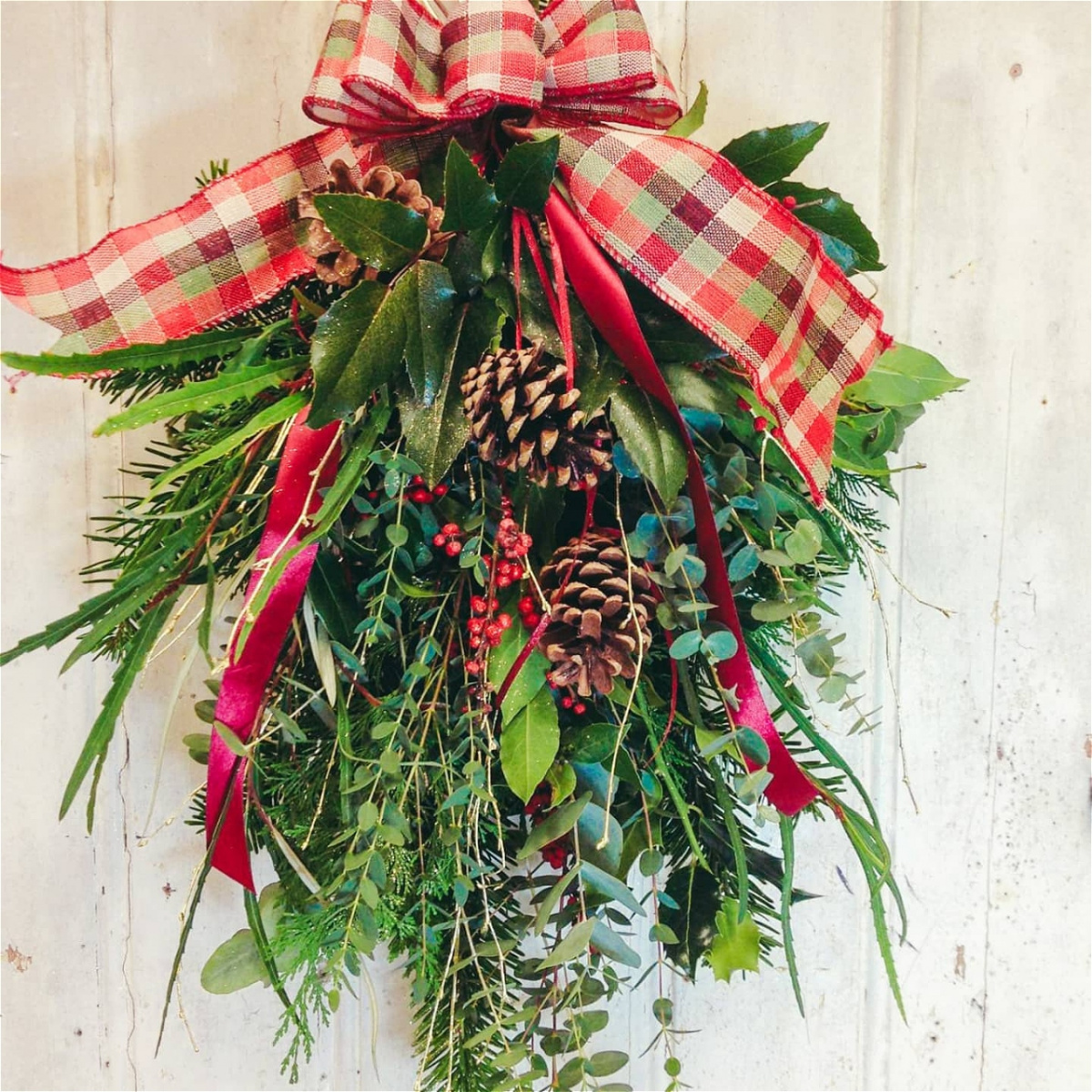Get your 'swagger' on! A perfect alternative to the Christmas wreath on your door both inside or out.